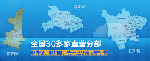 目前公司在全国分部30几家,包括川内川内地市除甘孜、阿坝外,已实现全覆盖,华中、西北部分地区,其他地区分部持续启动中。